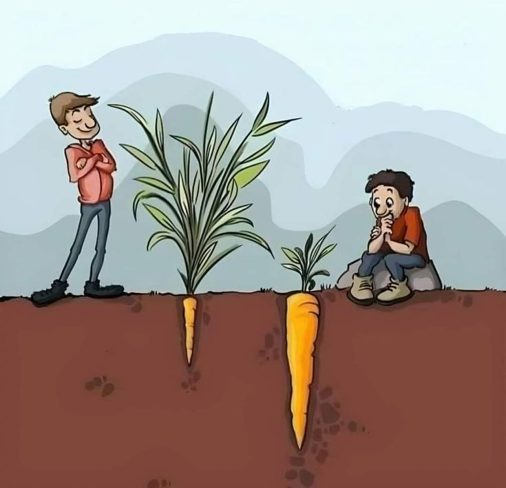 당근은 위로 자라는 나무를 먹는 것이 아니고 뿌리를 먹는 것입니다