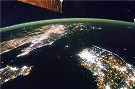 위 사진은 우주에서 찍은 남북의 밤의 땅 사진이다