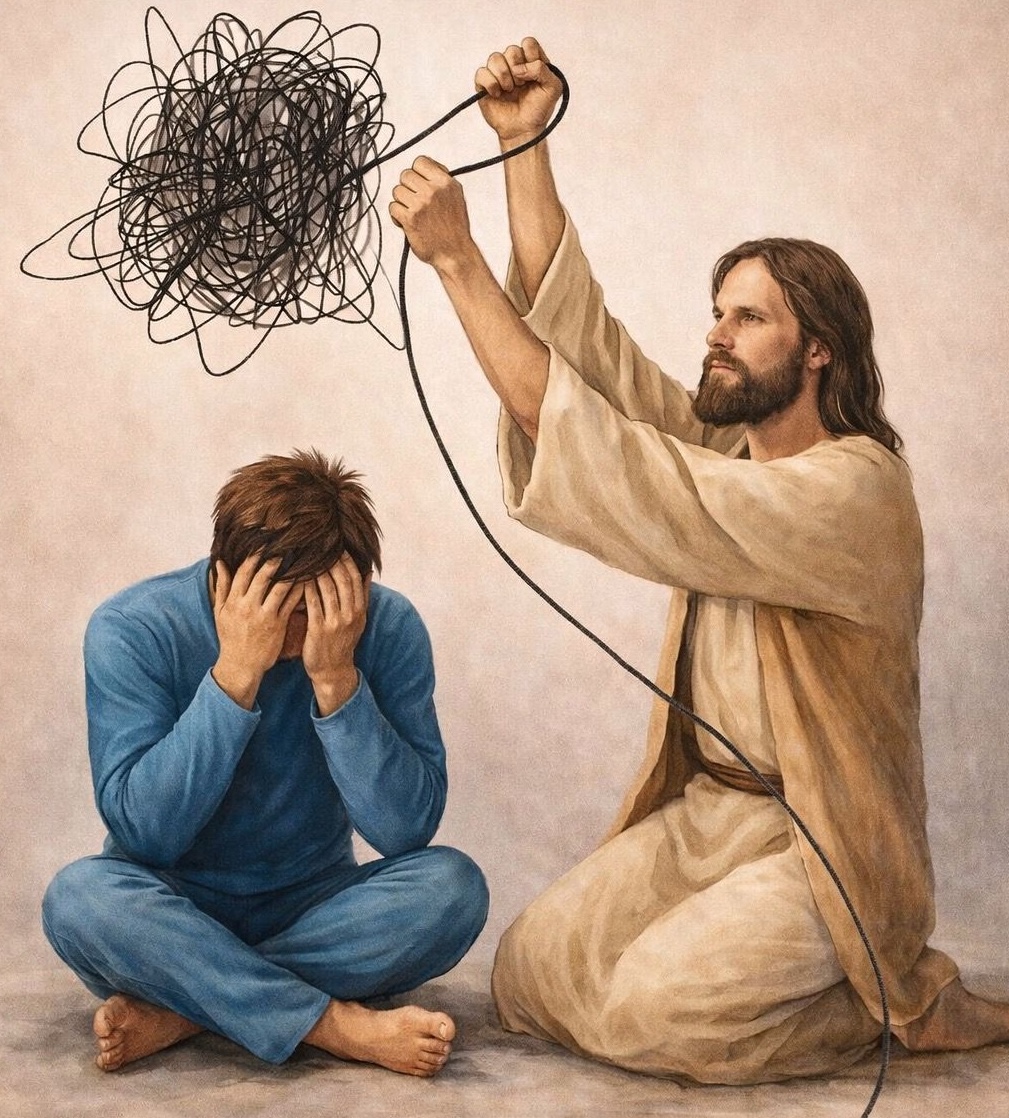 그런 생각들이 나를 지배하지 못하도록 예수님이 그 묶인 끈을 꼭 잡고 계십니다
