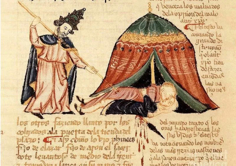 이스라엘 남자와 그 여인의 배를 꿰뚫어서 두 사람을 죽이니