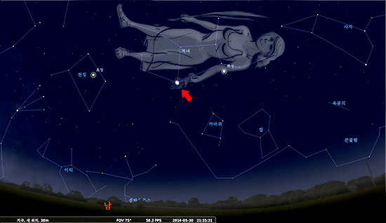 종려가지에 해당하는 별은 처녀자리 가운데서 제일 강한 전파 천체(라지도 별)이므로 처녀자리 A라고도 부릅니다.