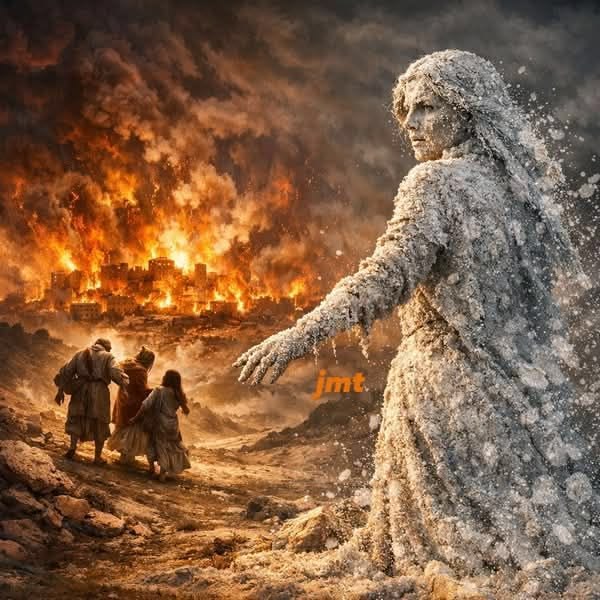 두 천사에 의해 이끌러 나왔지만 뒤를 돌아보고 소금 기둥이 되어버린