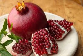 신부의 특징을 가진 왕관 모양, 붉은 빰, 그리고 열매인 자손을 의미하는 석류를